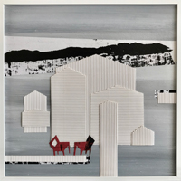 Strandhäuser II, 2024, Collage Mixed Media auf Hartfaser, Unikat, 30x30cm |